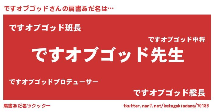 | 男性向けラノベタイトル風あだ名 | 『ですオブゴッドという概念が存在しない退屈な世界 』 |