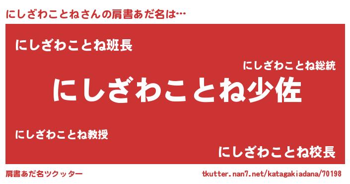 | ヘコむあだ名 | 『にしお』『にしざわことね(笑)』 |