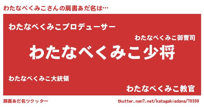 | 男性向けラノベタイトル風あだ名 | 『ワタナベクミコスレイヤー』 |