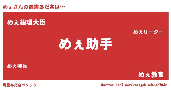 | 意味不明あだ名 | 『眠気覚ましガムめぇ味』『自称めぇ』 |