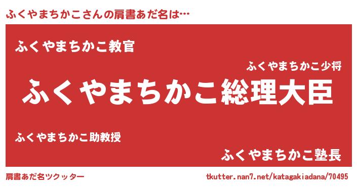 | 女子向けラノベタイトル風あだ名 | 『ふくやまちかこの婚約者』 |