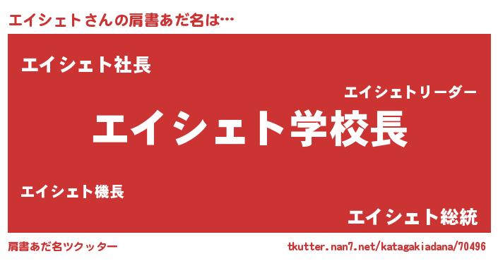 | ヒーロー風カッコイイあだ名 | 『天空の使者エイシェト』『暗黒騎士エイ』 |