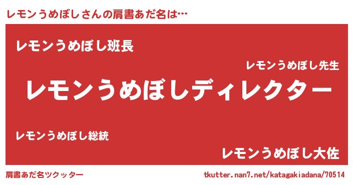 | ポケモン風あだ名 | 『レモゴンZ』『ヒレモンウメボシ』 |