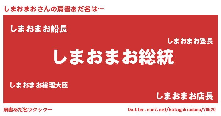 | 意味不明あだ名 | 『自称しまおまお』『ペロリンしまおまお』 |