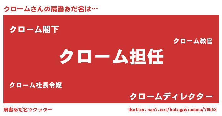 | 意味不明あだ名 | 『永久保存クローム』『自称クローム』 |