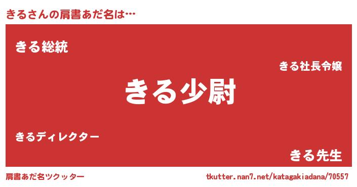 | 女子向けラノベタイトル風あだ名 | 『きるの玉の輿計画!』『きるの契約王妃』 |