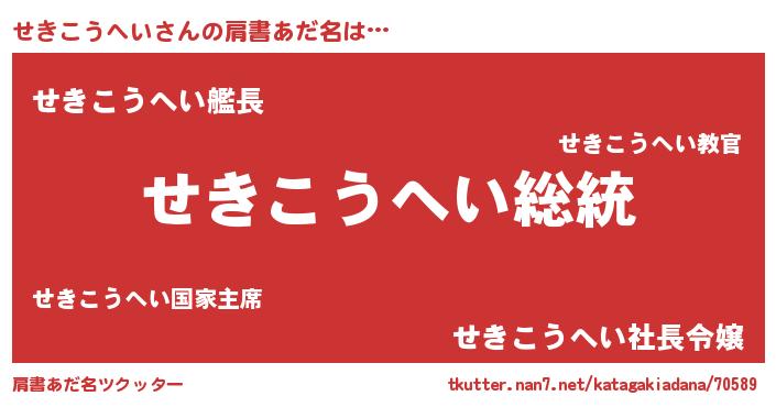 | 男性向けラノベタイトル風あだ名 | 『Re:せきこうへいから始める異世界生活』 |