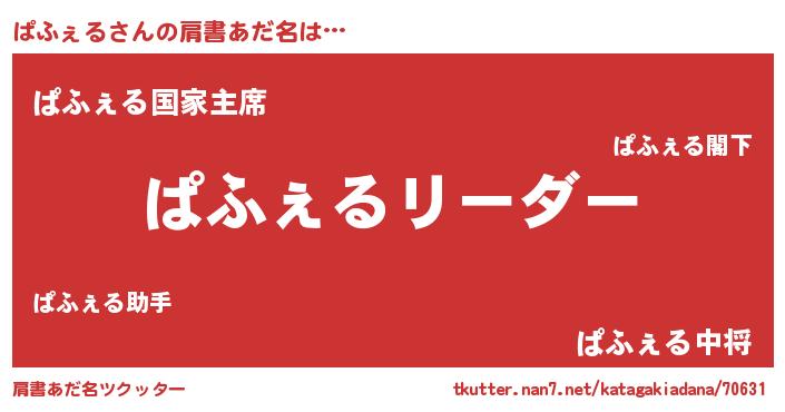 | 意味不明あだ名 | 『とにかく怪しいぱふぇる』 |