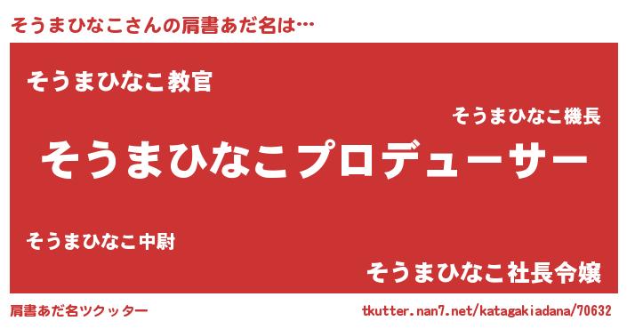 | 意味不明あだ名 | 『住所不定無職そうまひなこ(85歳)』 |