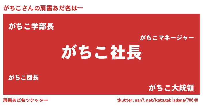 | 男性向けラノベタイトル風あだ名 | 『がちこの憂鬱』 |