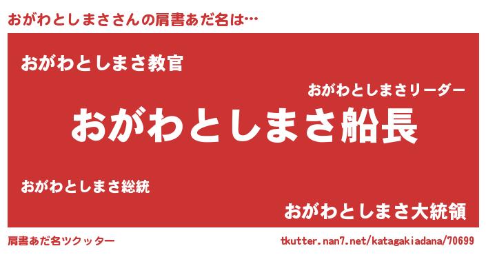 | 意味不明あだ名 | 『住所不定無職おがわとしまさ(1歳)』 |