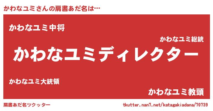 | ファンタジー風あだ名 | 『ユリカワヴァット』『カワディッシュ』 |