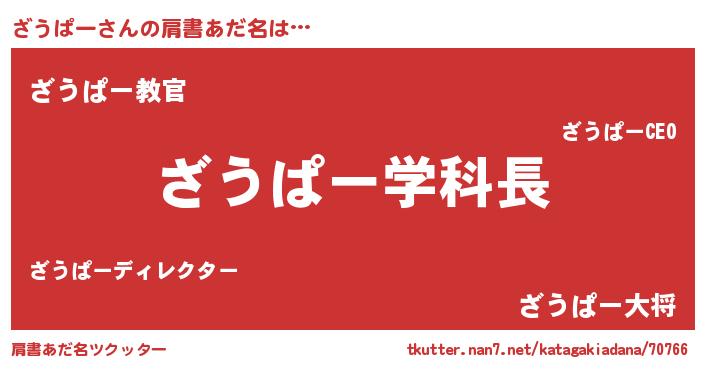 | 男性向けラノベタイトル風あだ名 | 『おまえをオタクにしてやるから、俺をざうぱーにしてくれ! 』 |