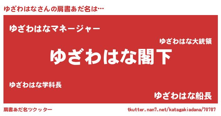 | ヒーロー風カッコイイあだ名 | 『最強戦士ユザワハナ』『魔戒騎士ユザ』 |