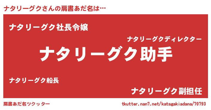 | ヘコむあだ名 | 『ナタふぇ~』『ナタリーグク(苦笑)』 |