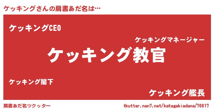 | 意味不明あだ名 | 『住所不定無職ケッキング(79歳)』 |