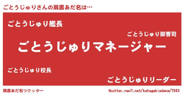 | 男性向けラノベタイトル風あだ名 | 『はたらくごとうじゅりさま!』 |