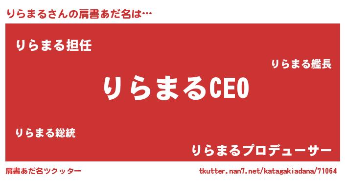 | ヘコむあだ名 | 『りらふぇ~』『りらまる(震え声)』 |