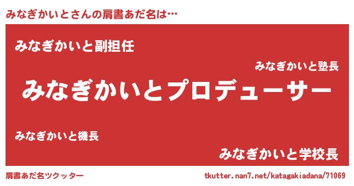 | ヘコむあだ名 | 『みなぎかいと(震え声)』『みなぷりん』 |