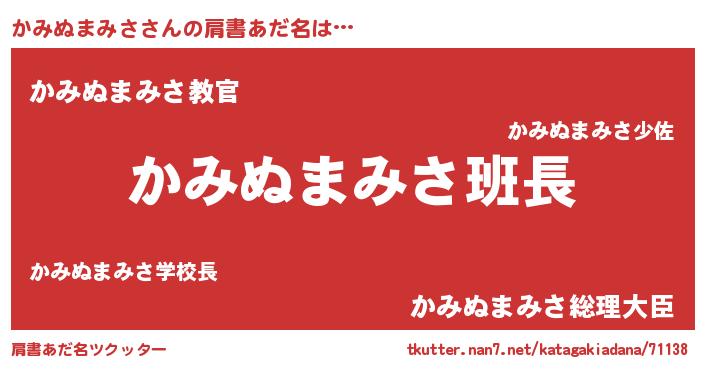 | 男性向けラノベタイトル風あだ名 | 『かみぬまみさの嫁は女の子じゃないと思った?』 |