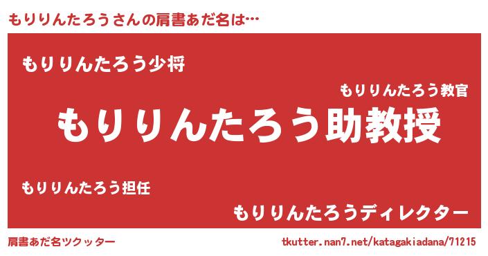 | 男性向けラノベタイトル風あだ名 | 『ノーゲーム・ノーモリリンタロウ』 |