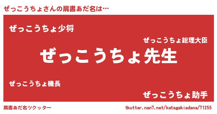| 男性向けラノベタイトル風あだ名 | 『ぜっこうちょという概念が存在しない退屈な世界 』 |