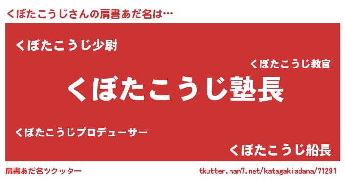 | 男性向けラノベタイトル風あだ名 | 『くぼたこうじの嫁は女の子じゃないと思った?』 |