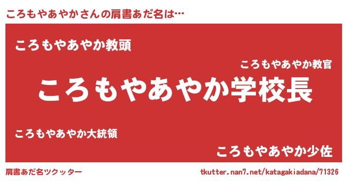 | 伝説のあだ名 | 『救世主となる占い師ころもやあやか』 |