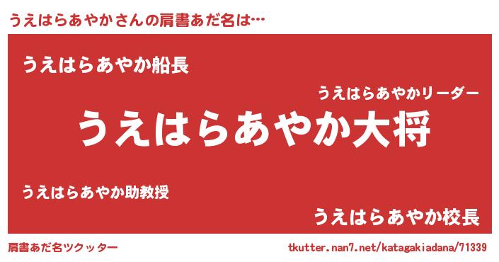 | ヘコむあだ名 | 『うえはらあやか(遠い目)』『うえを』 |