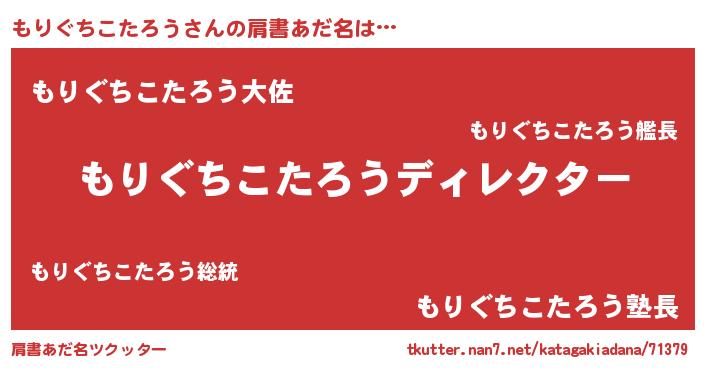 | 男性向けラノベタイトル風あだ名 | 『はたらくもりぐちこたろうさま!』 |