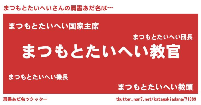 | 意味不明あだ名 | 『住所不定無職まつもとたいへい(53歳)』 |