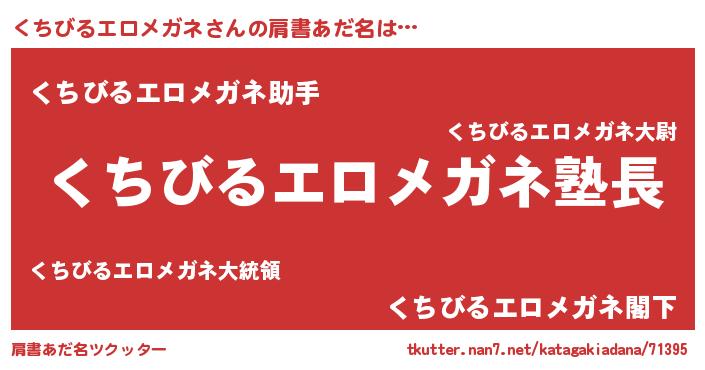 | 男性向けラノベタイトル風あだ名 | 『ダンジョンにくちびるエロメガネを求めるのは間違っているだろうか』 |