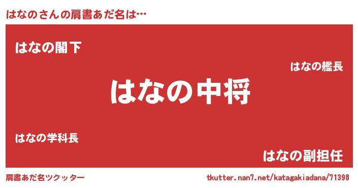 | 男性向けラノベタイトル風あだ名 | 『ハナノスレイヤー』 |