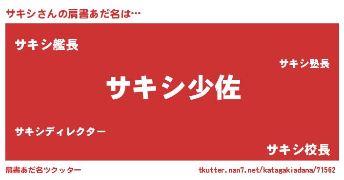 | 男性向けラノベタイトル風あだ名 | 『サキシ~年齢イコール彼女いない歴の魔法使い~』 |