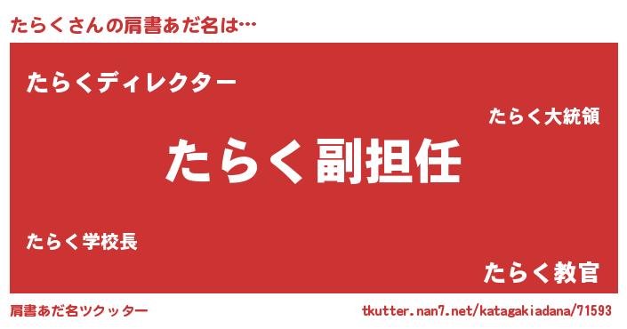 | 女子向けラノベタイトル風あだ名 | 『たらくの契約王妃』『たらく伯爵の花嫁』 |