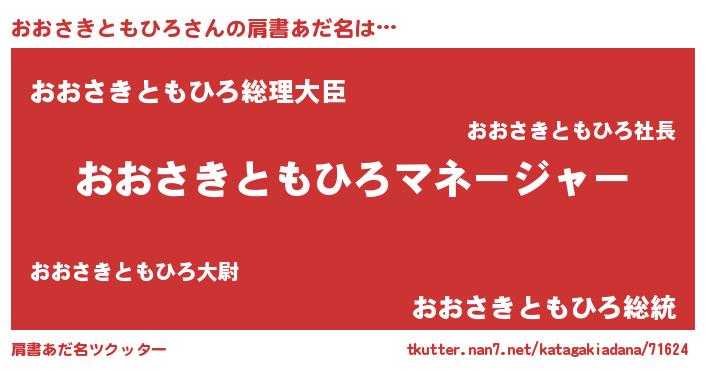 | 男性向けラノベタイトル風あだ名 | 『はたらくおおさきともひろさま!』 |