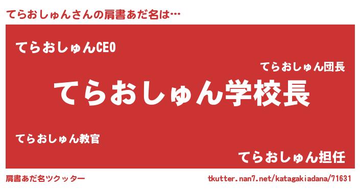 | 男性向けラノベタイトル風あだ名 | 『ノーゲーム・ノーテラオシュン』 |