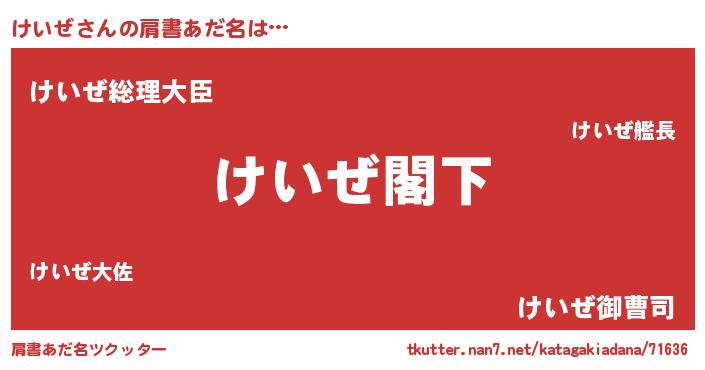 | 男性向けラノベタイトル風あだ名 | 『Re:けいぜから始める異世界生活』 |