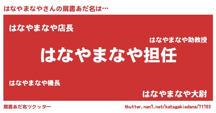 | 男性向けラノベタイトル風あだ名 | 『はなやまなやという概念が存在しない退屈な世界 』 |