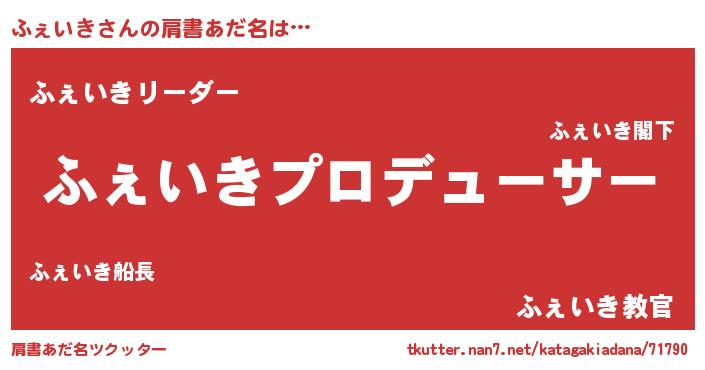 | ピコ太郎風あだ名 | 『フェ五郎』『ピコフ郎』『ピフ六郎』 |
