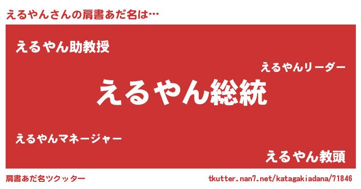| 男性向けラノベタイトル風あだ名 | 『Re:えるやんから始める異世界生活』 |