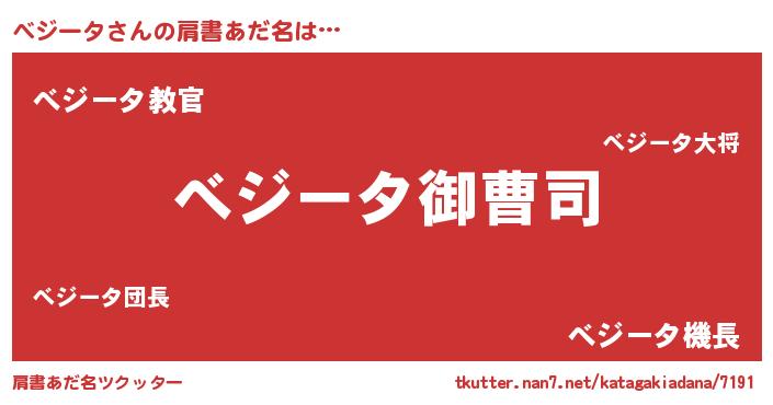 | 男性向けラノベタイトル風あだ名 | 『べジータの憂鬱』『魔弾の王とべジータ』 |
