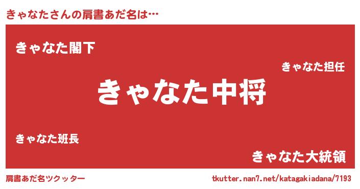 | ヘコむあだ名 | 『牛乳』『きゃなた(笑)』『きゃっ子』 |