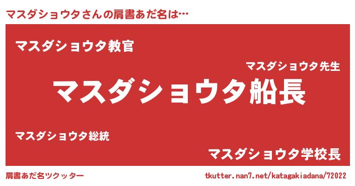 | 男性向けラノベタイトル風あだ名 | 『うちのマスダショウタが世界を掌握している!』 |