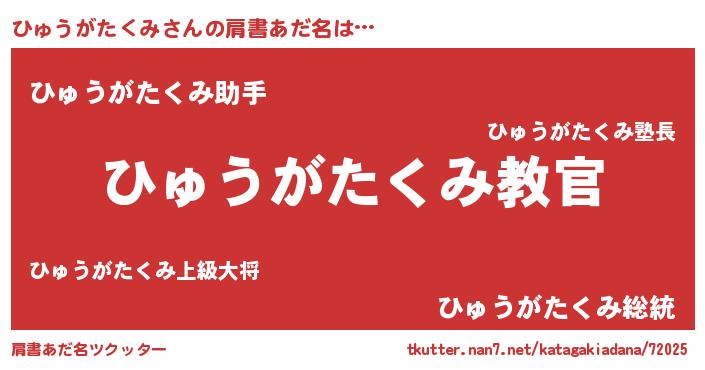 女子向けラノベタイトル風あだ名 | 『ひゅうがたくみが死なない童話 林檎のひゅうがたくみの診療簿』 |