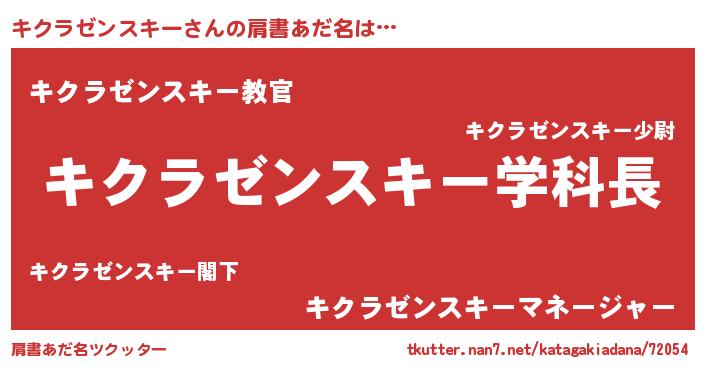 | 男性向けラノベタイトル風あだ名 | 『ノーゲーム・ノーキクラゼンスキー』 |