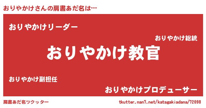 | 意味不明あだ名 | 『住所不定無職おりやかけ(91歳)』 |