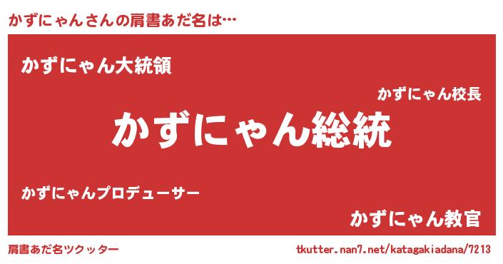 | 男性向けラノベタイトル風あだ名 | 『Re:かずにゃんから始める異世界生活』 |