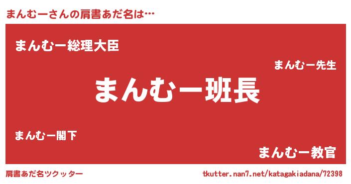 | 意味不明あだ名 | 『とにかく怪しいまんむー』 |