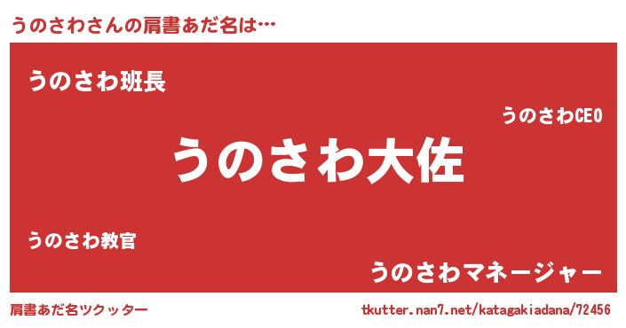 | 男性向けラノベタイトル風あだ名 | 『うのさわ~年齢イコール彼女いない歴の魔法使い~』 |